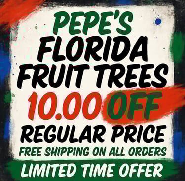 Organic Pest Control = bugs don’t stand a chance (scarier than a Florida summer!)The result? A super-sturdy starter tree that practically flexes in the box—ready to rock your garden, boost biodiversity, and help the planet. We never cut corners. You get premium quality—proof that you really do get what you pay for. Ditch the sketchy shortcuts. Choose Pepe’s with flair. Plant with total confidence. These beauties are built to thrive, shine, and turn heads.